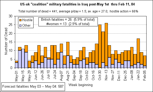 Death Toll While Enforcing the Occupation of Iraq: 5/1/03 -- 2/8/04