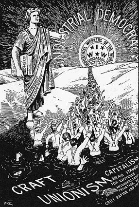Although created later, this poster from the U.S. IWW (aka “the Wobblies”) captures the spirit and goals of that first movement wonderfully.