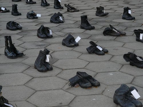 Each pair of boots represent a dead Georgia man because of the Iraq war.