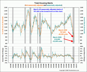 As for housing; the situation is devolving beyond anyone’s wildest expectations. It’s not a Depression, it’s bigger and more savage — an Uber-Depression! Take a look at this chart from Barry Ritholtz’s The Big Picture.