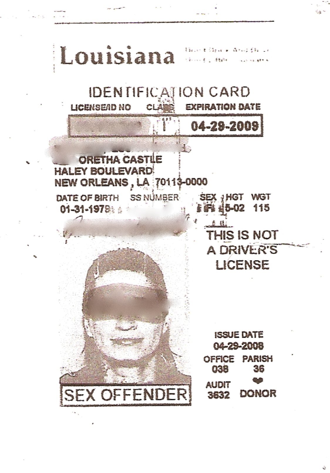 Jennifer, a 23-year-old white woman who asked that her real name not be used in this story, has been working as a prostitute since she was a teenager, and also works as a stripper at a club on Bourbon Street. She recently broke free of an eight-year heroin addiction. Unless the law changes, she will have the words “sex offender” on her driver’s license until she is 48 years old.