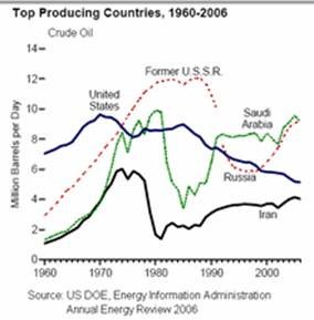 Note that Saudi Arabian and Iranian oil productions increased during the 1990’s and Russian oil production dropped sharply. Demand was there, but Yeltsin’s policies neither enabled the world’s largest oil producer to produce nor prevented it from halving output within two years. Although oil production and prices bottomed, Yeltsin’s Russia did not. The GDP continued to fall, lowering to 38% of the value at the time Yeltsin took office.