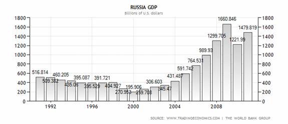 “In retrospect, Mr. Putin was lucky to inherit a recovering economy and an incipient oil- and commodity-price boom from Mr. Yeltsin.” ((The Economist, February 28, 2008.))