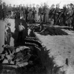 There were many massacres of Indian peoples before the advent of photography. There is also a famous set of photographs regarding the event of December 29, 1890, known to Indians as the Massacre at Wounded Knee and to the United States government as the Battle of Wounded Knee. Some of these in conjunction with the moccasin telegraph taught a lesson not to be forgotten to the still-surviving illiterate tribes if North America: the end of times was upon them and the unity with which they identify. Some of the photographs are reproduced below. Please try to see them as they would have been seen and still are perceived by the Indian peoples, perhaps even before considering the text that accompanies them at Wikipedia, Wounded Knee Massacre.