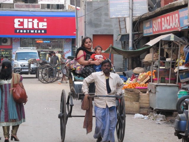 It was not uncommon to see two corpulent passengers with many bags of goods being trotted home by the lean rickshaw pullers — like scenes straight out of Aravind Adiga’s, The White Tiger: “thin stick men, leaning forward … bearing a pyramid of middle-class flesh – some fat man with his fat wife and all their shopping bags and groceries.” ((Aravind Adiga, The White Tiger (Noida, India: Harper-Collins, 2009): 27.))