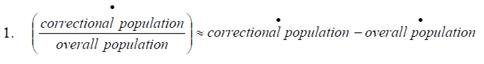 Let us try to make sense of these two observations. The first step is to decompose the rate of change of the correctional population. Consider Equation (1), where the dots on top of the variables indicate temporal rates of change. In this equation, the rate of change of the share of the correctional population in the overall population is approximately equal to the rate of change of the correctional population less the rate of change of the overall population.
