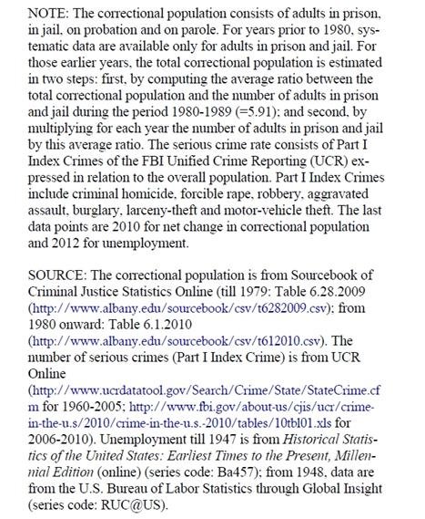 In our view, though, this would be a hasty conclusion to draw. It seems to us that, at any point in time, penality should be proxied not by the overall level of the correctional population, but by their current rate of change. The reason is simple. The overall level of the correctional population is determined by two factors: (1) the cumulative results of past crime and punishment; and (2) current crime and punishment that cause this cumulative result to increase or decrease. The current rate of unemployment affects only the second of these factors; it influences not the past levels of crime and punishment, but its rate of change.