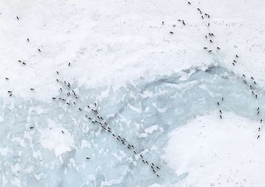 A migrating caribou herd, who are making their journey in declining numbers.