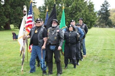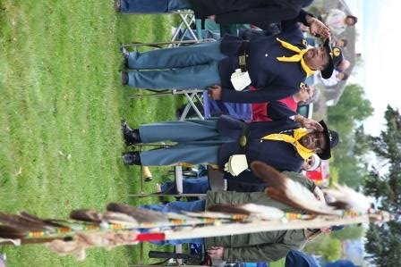 City of Vancouver mayor pro tem was there reading a proclamation of peace and admitting the history of that crime; the dignitaries from the National Park, Boy Scouts, military vets, others. Native Americans, sure, some also combat vets — some old fellows with Korea and Viet Nam logos on leather jackets. A couple of WWII logos. Two African Americans dressed up in Yankee garb — Buffalo soldiers. One was 92 years old.
