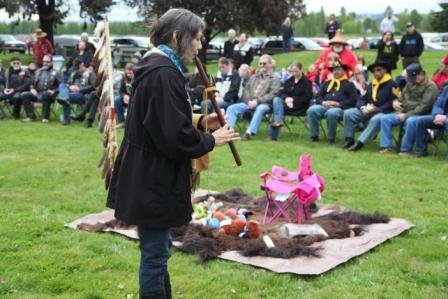 “She just kept going back and forth and bringing rifles so the Nez Perce could regroup and hold off the Army. Few escaped that massacre, but Tse tal pah made it to Canada and she had a son who had a son who had a daughter who gave birth to Tuk luk sema – which means ‘seldom hunts’ – and that is my wife’s father, who is a fisherman,” Grey Owl recounted.