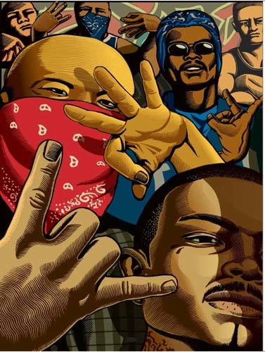 The 27-page, high budget brochure, leaked to the press in 2007, shows an Aryan nation under siege by African-Americans and “illegal alien gangs” of darker peoples and homeowners defending themselves from a Helter Skelter-like apocalypse by shooting from rooftops. Derisive and inflammatory cartoons depict Hillary Clinton, Senators Barbara Boxer, Dianne Feinstein, Charles Schumer and the late Ted Kennedy, Rep. Nancy Pelosi, New York City Mayor Michael R. Bloomberg and Secretary of State John Kerry, summarizing their alleged attacks on gun rights. Also depicted are Katie Couric, Michael Moore, George Soros, Rosie O’Donnell, former New Orleans Police Department Chief Eddie Compass and former UN Director of the International Action Network on Small Arms Rebecca Peters. (“The U.N. represents the world’s wealthiest and most organized enemy of the very freedoms our nation offers to all. They’ve already been successful in orchestrating gun bans in once-free countries like England, Australia, Canada and South Africa,” says the brochure, Onion-style.)