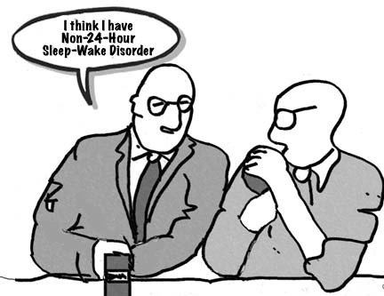 You don’t have to be a cynic to wonder if the new disease–and the drug that will treat it if approved– is actually being marketed to the hundreds of millions of adults with sleep problems. When I called the phone number and asked the “health educator” if I could have Non-24 even though I am not blind, I was told “you don’t have to be blind to have Non-24” though it is more common in blind people. When I asked if there was a pill I could take if I had symptoms, my educator said he was unable to answer that because, “I am not a doctor,” be promised to send me more information.