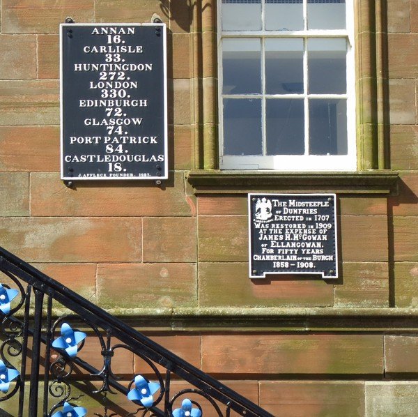In my younger days when I lived and worked in Scotland, I was intrigued by an old iron plate fixed to the Midsteeple in Dumfries: “Edinburgh 72, Glasgow 74, London 330… Huntingdon 272”. Why Huntingdon, of all destinations in the south? No-one seemed to know.