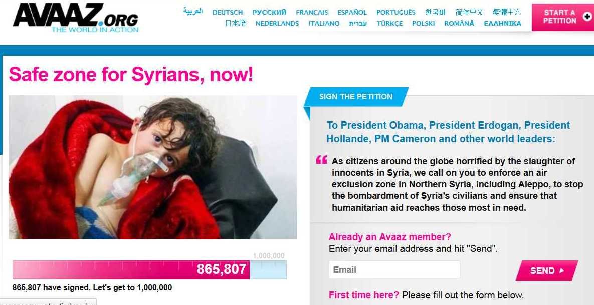 Avaaz Petition for Syria No Fly Zone — 2015 (Syria Campaign Posting)