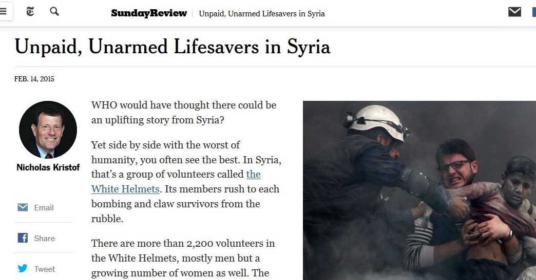 Now Kristof is uncritically promoting the White Helmets, aiding and abetting their political and propaganda message seeking foreign intervention in Syria.