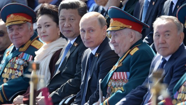 [Sidebar: Notice on the photo of Xi and Putin that there is one more absolutely crucial figure sitting next to the war veteran: Nursultan Nazarbaev, the President of Kazakhstan. The crucial role this man has played to shape today’s world has not been recognized, but with time I am sure it will. Long before Putin, it was Nazarbaev who did everything in his power to prevent the breakup of the Soviet Union, the creation and strengthening of the Commonwealth of Independent States and the creation of the Eurasian Economic Union. I would note that Putin has, on several occasions, expressed his deep admiration for, and gratitude to, Nazarbaev whom he has explicitly described as the “father” of the new Eurasian union.]
