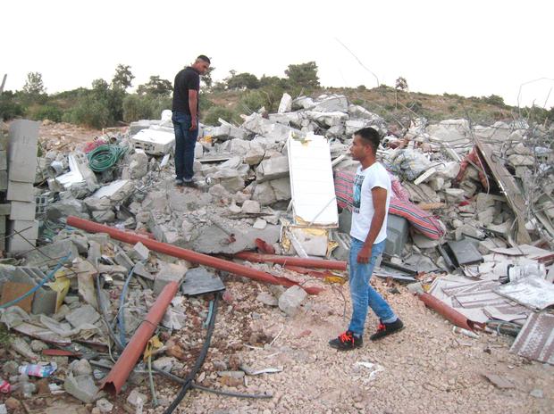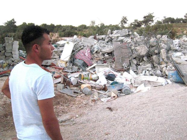 A relative surveys the ruins of Tareq Khatib’s home (Photos: Jonathan Cook)