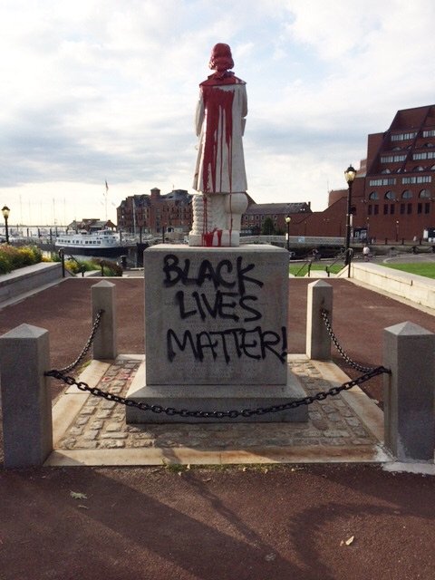 What on earth could this random paint-smearing of a statue of Columbus have to do with the #BlackLivesMatter movement?