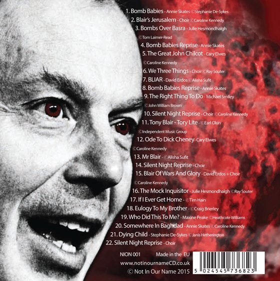 I think we were fortunate in that the timing was right – Blair, Chilcot, Syria (mirroring Iraq) and the plight of the refugees were all making headlines on a daily basis throughout the summer. All this helped fire the determination to get this CD made, help the victims and concentrate people’s minds on saying “Not in Our Name” to yet another war, this time in Syria.