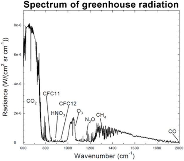 (iv) The final piece of evidence is ‘the smoking gun’, the proof that CO2 is causing the increases in temperature. CO2 traps energy at specific wavelengths, and other greenhouse gases trap different wavelengths.