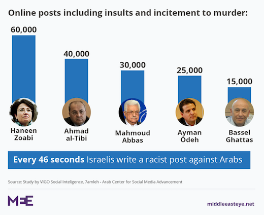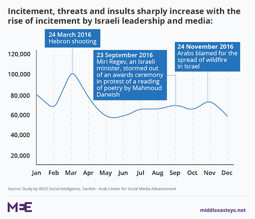 Concern about the effects of incitement from leading politicians has been underscored by a survey published this month that found rocketing levels of online abuse from Israeli Jews against Palestinians.