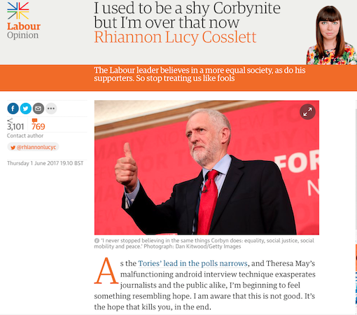 Even George Monbiot, your in-house radical, sounded almost apologetic telling us recently that he supported Corbyn. No wonder you were too afraid to tell your bosses how you felt, or to pitch to them a pro-Corbyn commentary over the past two years. Safer to keep that information to yourself.