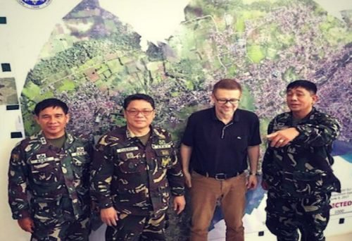 Andre Vltchek with military leaders in Marawi, Philippines.