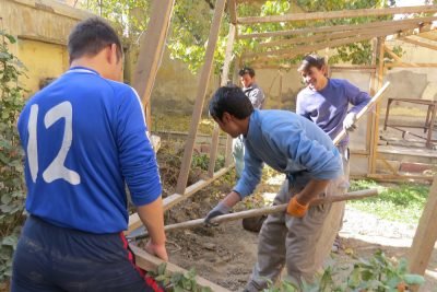 Ghulam (second from left) working on our community’s greenhouse, together with Zek, Khamad and Ali