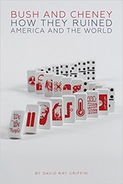 Griffin is a master logician, so he begins with the obvious fact that the Bush-Cheney administration failed to prevent 9/11 and therefore failed to keep America safe that day, as Donald Trump said in a 2016 election debate, for which he was castigated by his opponents and the media. But he was right; it is a fact, whatever Bush-Cheney’s deceptive excuses. As a result of those attacks, the US attacked Afghanistan, claiming that was because Osama bin Laden orchestrated the attacks from that country. No evidence of bin Laden’s guilt was ever presented, though Colin Powell initially said it would be shortly forthcoming (he quickly reneged on the promise). The invasion of Afghanistan, planned well in advance of 9/11, was the start of the war on terror that’s been going on for 16 years with no end in sight. A 16-year-old war based on no evidence, just lies.