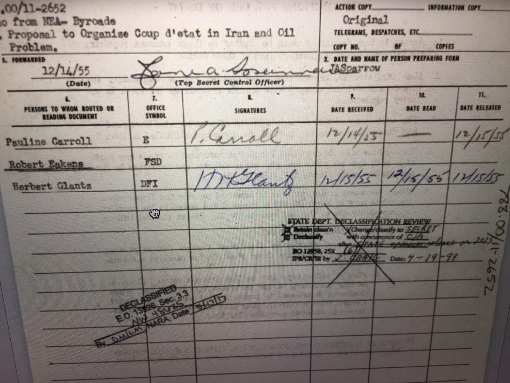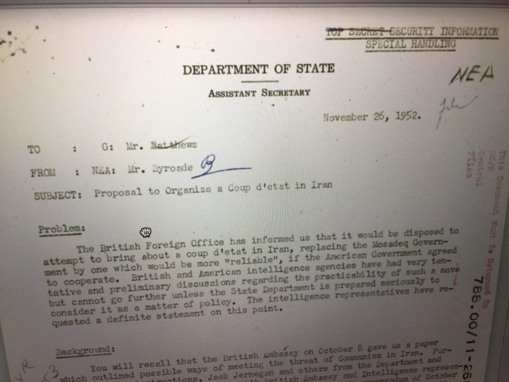 Declassified, U.S Department of State “Top Secret” documents from 1952, also clearly demonstrated great appetite of the U.K. to perform the coup in Iran: