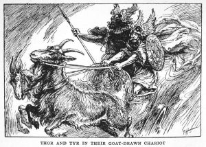 Thor and Tyr in their Goat-Drawn Chariot (From “The Book of Myths” by Amy Cruse, 1925)
