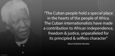 For Fidel and the young Cuban revolutionaries he was part of and led, this was not a hollow, ritual phrase, something to give lip service to only to contradict in practice, but a genuine belief and a genuine practice. In 1976 Cuba sent volunteer revolutionary combatants to the front-line of newly independent Angola to beat back the invading behemoth of the South African apartheid state (covertly backed by Washington). In 2014 Cuba rushed doctors and medical personnel to West Africa in what became the decisive turning point in containing and overcoming the 2014-15 Ebola epidemic.
