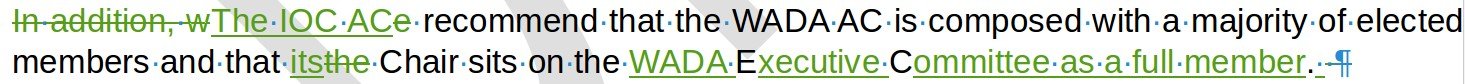 Those who want to get a better feel for the nuances of the disputes between WADA and the IOC regarding the work of the world anti-doping agencies can study the draft presentation paper, which the Athlete Commission of the IOC drafted in the wake of Olivier Niggli’s maneuver. In our opinion, the main correction introduced into the text that day was the recommendation that WADA AC be composed with a majority of elected members and that its Chair should sit on the WADA Executive Committee as a full member: