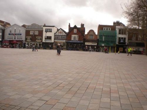 I made my way to the Maltings where Skripal and his daughter had been found, collapsed on a bench. It’s a pedestrianised area, with a central green area (where that bench was) beside a river, surrounded by some big stores and lots of little, individual shops. Walk through it from the car parks and you come out into the old city centre with its ancient timber-frame and brick buildings. It’s not just popular with the locals, it is tourist heaven.