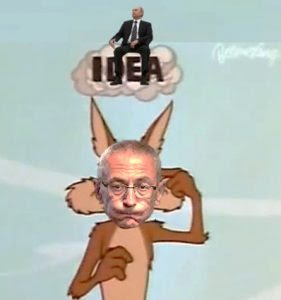 Much like Wile E. Coyote at the bottom of the U-shaped gorge, we find today the collusion-boulder gazing down upon Podesta et al from the peak of Mt. Trump. Curiously enough, Lady Lynn de Rothschild perceives all that is portended for The Valley of the Dems below. She intuits the fatal turn very early on too.