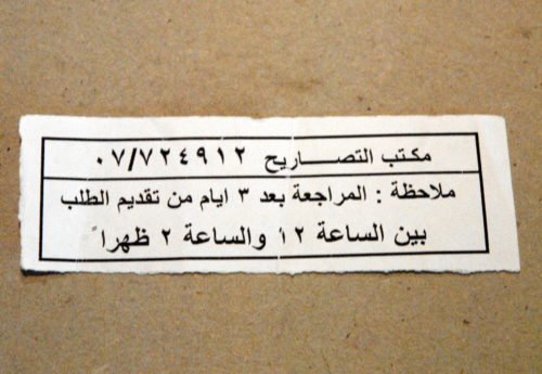 Handing me back my passport and tossing the business card to one side casually, he hands Kifah a small white piece of paper, with Arabic writing on it, then picks up a huge binder stuffed with paper sized sheets of unknown origin. Finding the first blank space he enters the copy of my passport and his notes so far. “No Pictures!” he barks and repeats the command to Kifah along with other info. I do not understand, then with a dismissive wave of his hand sends us back down the creaky wooden stairs and out into to the daylight and a camp filled with soldiers.