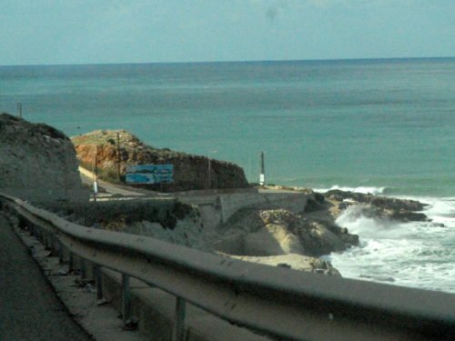 Most reporters heading south are on sponsored news junkets with all the details worked out for them beforehand, so they see only what is scripted. Alternatively, one might go it alone; put the beautiful and rugged Lebanese blue and grey rock-lined coastline on one’s right hand side, with the ever-ascending brown, dusty denuded hills on the left, drive at high speed due south, looking across the expanses of dark green banana palms to the southwest side of the well worn four-lane highway, with… fingers crossed!