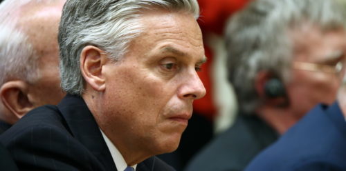 HELSINKI, FINLAND ñ JULY 16, 2018: US Ambassador to Russia Jon Huntsman Jr looks on during a joint news conference by Russian President Vladimir Putin and US President Donald Trump following their meeting at the Presidential Palace. Valery Sharifulin/TASS