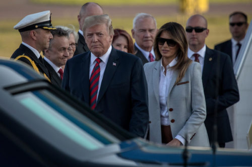 President Trump and first lady Melania Trump arrive in Helsinki, Finland, on Sunday ahead of a meeting with Russian President Vladimir Putin. Trump is under increasing pressure to confront Putin directly about special counsel Robert Mueller’s indictment of 12 Russians accused of conspiring to interfere in the 2016 election
