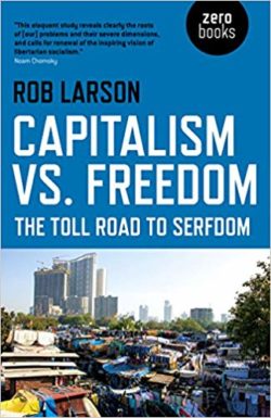 The economist Rob Larson has performed an important service, therefore, in publishing his new book Capitalism vs. Freedom: The Toll Road to Serfdom, the more so because the book’s lucidity and brevity should win for it a wide readership. In five chapters, Larson systematically demolishes the glib nostrums of Milton Friedman and Friedrich Hayek (in the process also dispatching those other patron saints of the right wing, Ludwig von Mises, Ayn Rand, and Murray Rothbard). Even the book’s title is highly effective: the message “capitalism vs. freedom” should be trumpeted from the hills, since it challenges one of the reigning dogmas of our society. Liberals and leftists themselves sometimes buy into the view that capitalism promotes freedom, arguing only that socialist equality and justice are more important than capitalist freedom. But this is a false framing of the issue. The fact is that socialism, which is to say workers’ democratic control of the economy, not only means greater equality and justice than capitalism but also greater freedom, at least for the 99 percent. It is freedom, after all, that has inspired anarchists and even Marxists, including Marx himself.
