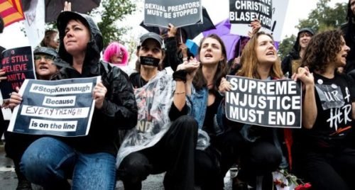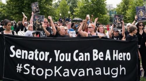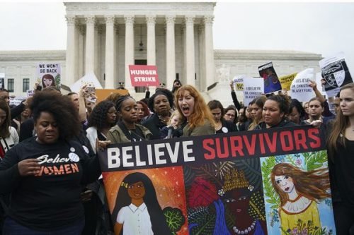 Kavanaugh protesters call for his rejection over sexual assault call to Believe Survivors (Photo by Carol Kaster Associated Press)