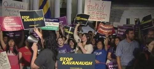 Demonstrators protest outside of Supreme Court after Judge Brett Kavanaugh was chosen by President Trump as his nominee for the high court. From FOX 45 DC twitter.