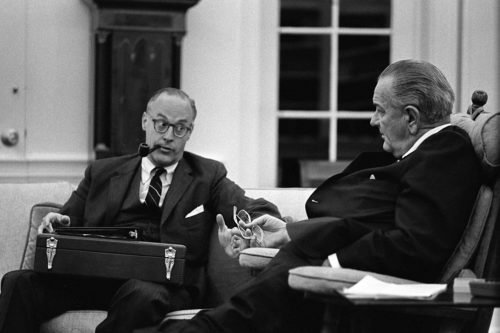 Robert Komer meeting with President Lyndon B. Johnson, November 16 1967. Photo credit: Lyndon Baines Johnson Library and Museum / Wikimedia