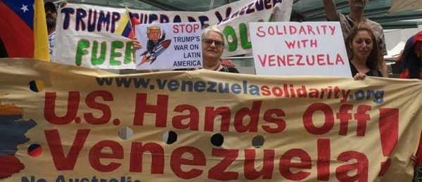 A protest outside the United States Consulate in Sydney on January 23 2019 to demand no US intervention in Venezuela.(Photo: Peter Boyle)