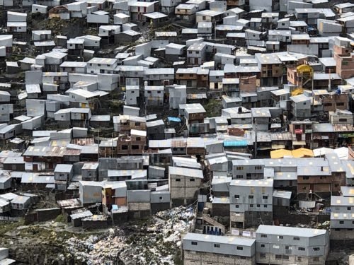 Mountains and valleys are dotted with metal shacks, with makeshift structures. The filth is everywhere. There is no water supply. Electricity is scarce.