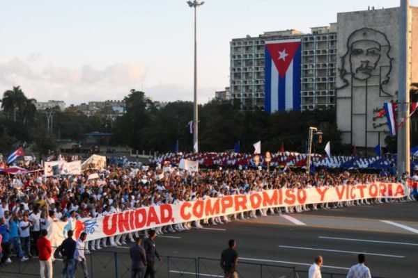 Just as the sun started to rise the march to celebrate the International Day of the Workers began and behind the banner that read Unity, Commitment and Victory were not soldiers with weapons but waves of doctors, soldiers in white, who had recently been expelled from Brazil by the right wing government of Bolsonaro leaving vast areas of Brazil without medical professionals. Vibrant demonstrations also marked the occasion in all 15 provinces of Cuba and the Isle of Youth.