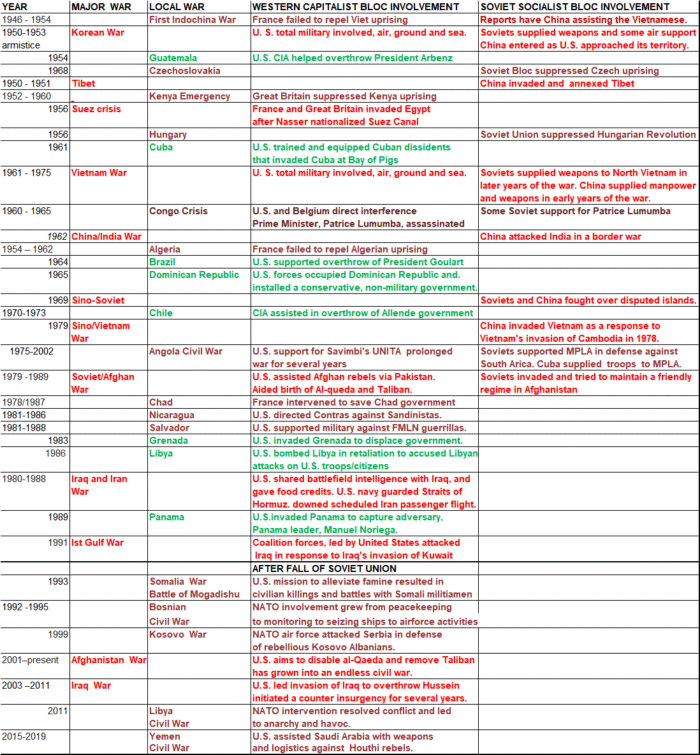 A chart of the history of major wars during the 1946-1991 era tells a story. Years succeeding the collapse of the Soviet Union and its communist system add to the story. A review of economic warfare completes the picture.