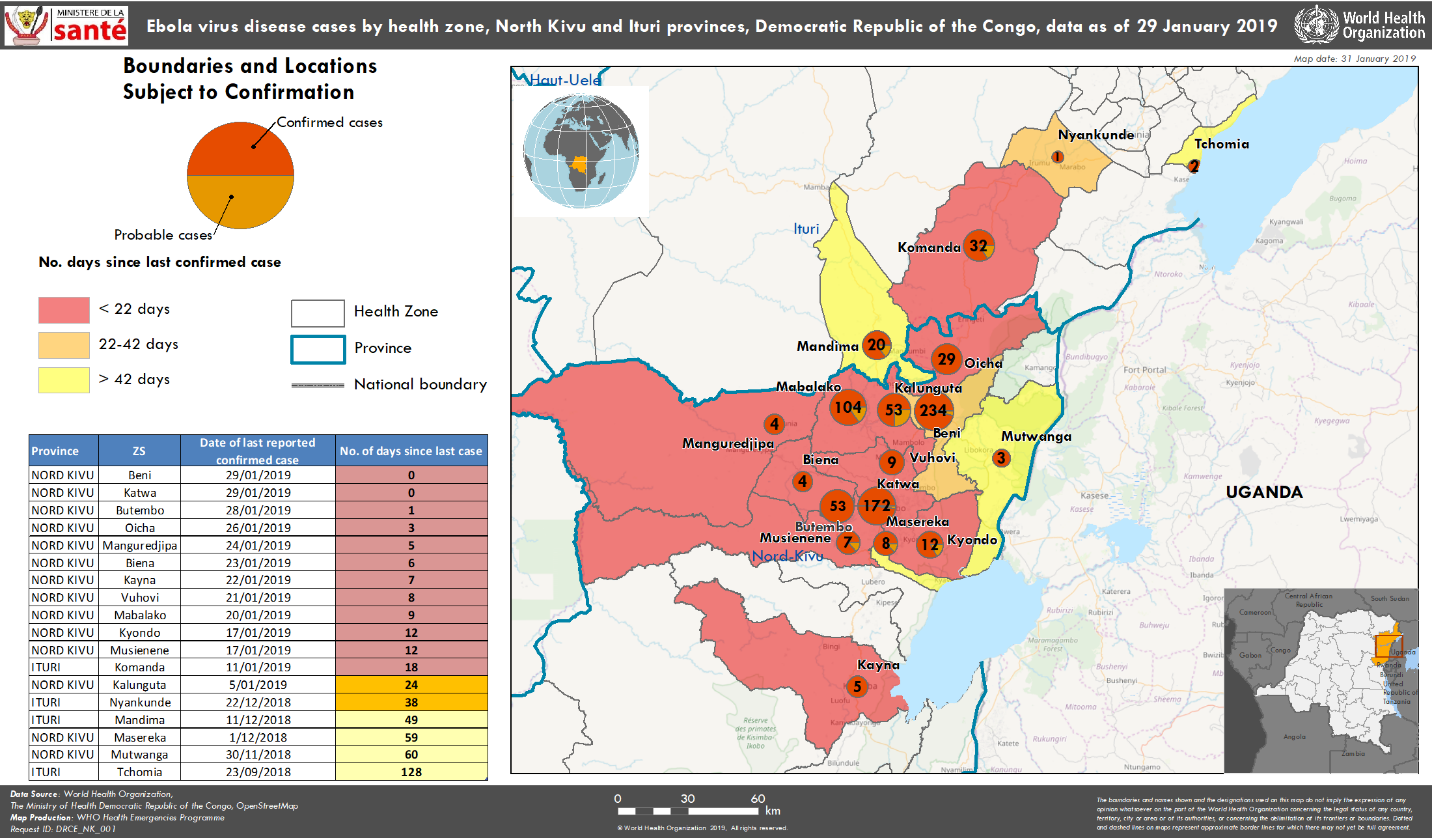 The UN’s emergency management plan for the epidemic is operational but requires 71.5 million USD. (( “RD Congo – Sud-Kivu et Maniema : Plan Opérationnel d’Urgence (January-June 2019),” UN Office for the Coordination of Humanitarian Affairs, April 10, 2019, reliefweb.))