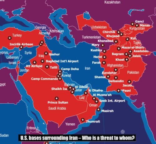 The U.S. government claims it is threatened by Iran. Yet, according to David Stockman writing in Antiwar.com, the United States surrounds Iran with forty-five U.S. bases, and Iran’s defense budget of less than $15 billion amounts to just seven days of money spent by the Pentagon.
