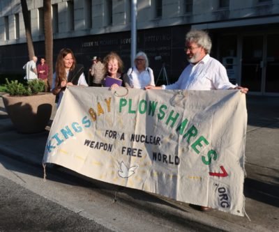 “Whether nuclear weapons are actually illegal under international or domestic law (a doubtful proposition) is not relevant or an appropriate issue to litigate in this case,” so ruled Judge Lisa Godbey Wood of the US District Court for the Southern District of Georgia, late on Friday October 18. This last-minute order, restricting the defense of seven antinuclear activists at a trial that began Monday morning the 21st, made a short trial a foregone conclusion. It also, more than any evidence that the yet to be impaneled jury would eventually hear, made their convictions all but certain.